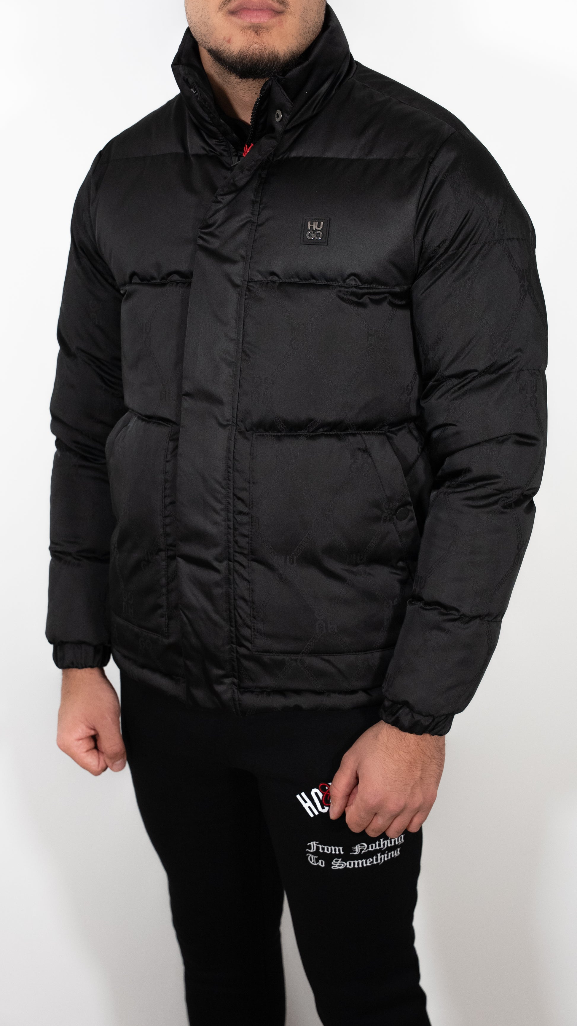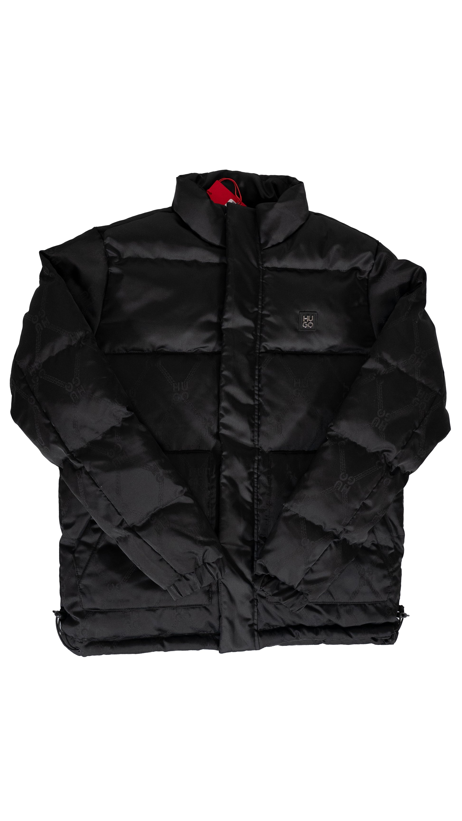 HUGO Crna Jakna sa Box Logom i All-Over Logo Printom